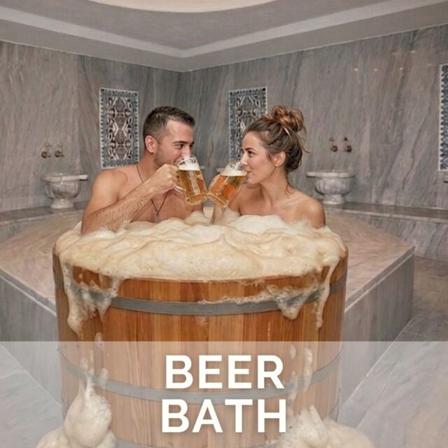 As you immerse yourself in the warm beer bath in the hammam, a gentle and gradual increase in cardiac activity is induced, blood circulation is activated, pores are opened and toxins are eliminated.